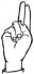 На ћирилици написано НИКОДИЈЕ ДУРКАЛИЋ састоји се из 16 слова [?]. Исписано ћириличном једноручном азбуком за глувонеме: